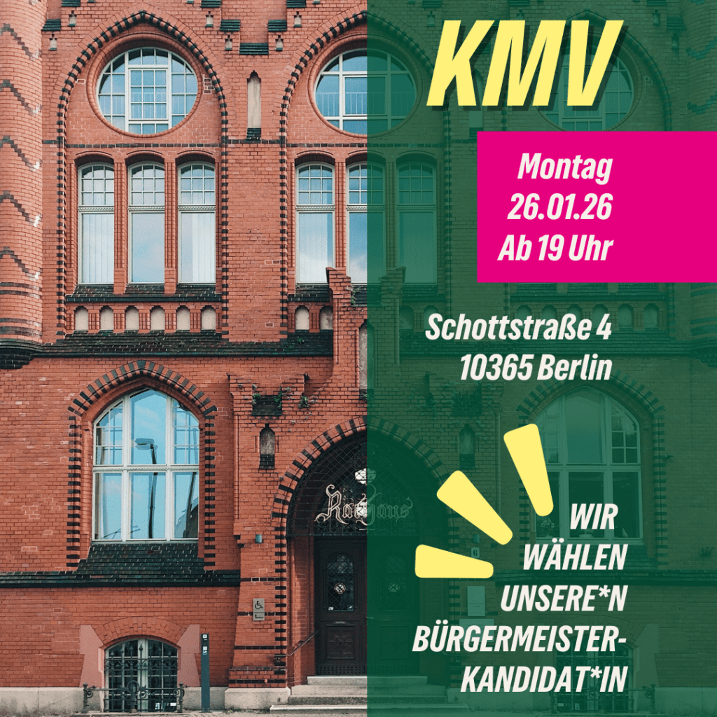 Im September 2026 wird gewählt – und es geht um alles: um unsere Stadt, unsere Kieze und unsere gemeinsame Zukunft. Wir kämpfen dafür, Lichtenberg und Berlin mutig, sozial und ökologisch zu gestalten und treten mit Werner Graf als unserem Spitzenkandidaten für das Amt des Berliner Bürgermeisters an. Mit voller Energie treten wir in sechs Lichtenberger Wahlkreisen an. Unser Ziel ist eine verantwortungsvolle Landesregierung und ein bündnisgrünes Berliner Rathaus, das Haltung zeigt: für bezahlbares Wohnen, Klimaschutz, sichere Mobilität und ein gutes Leben für alle.